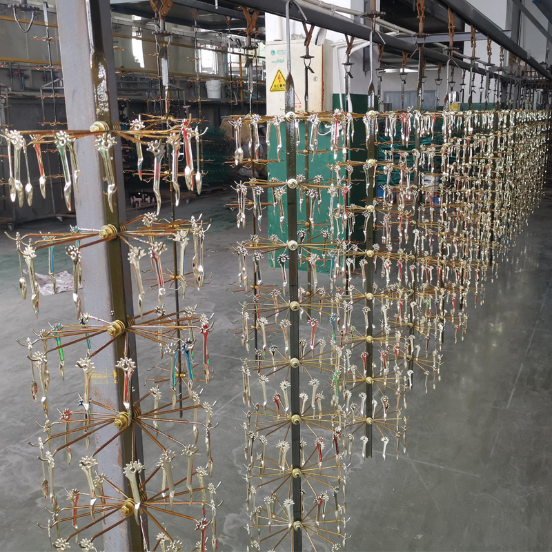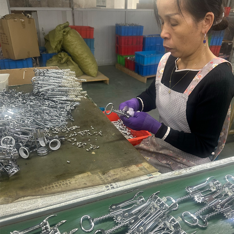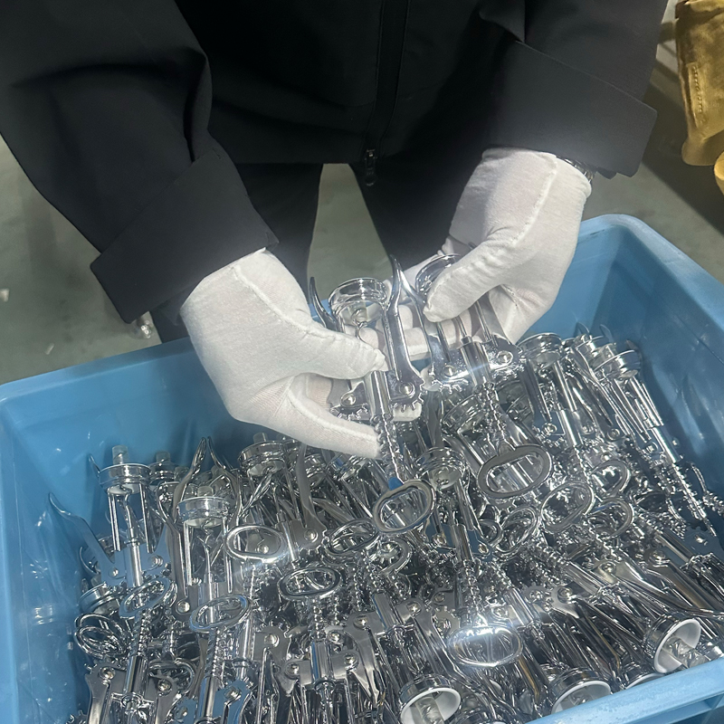 โดยทั่วไปการเคลือบบนส่วนประกอบทั้งหมดของเกลียวจะใช้วิธีการชุบด้วยไฟฟ้าหรือการทาสี สำหรับภาพประกอบนี้ เราจะเน้นไปที่การชุบด้วยไฟฟ้า กระบวนการชุบด้วยไฟฟ้าเสร็จสิ้นโดยซัพพลายเออร์ภายนอก ซึ่งต้องใช้สิ่งอำนวยความสะดวก อุปกรณ์ และวิศวกรอุตสาหกรรมที่มีความเชี่ยวชาญสูงที่มีประสบการณ์ในสาขาของตน พร้อมด้วยช่างเทคนิคพื้นฐานจำนวนมากและพนักงานที่มีประสบการณ์ ซึ่งเป็นกระบวนการที่ซับซ้อนมาก เรารักษาความร่วมมือระยะยาวกับซัพพลายเออร์ที่มีประสบการณ์ในอุตสาหกรรม 30 ปี เพื่อรับประกันความเสถียรของผลิตภัณฑ์ นอกจากนี้ยังช่วยให้มั่นใจได้ว่าปัญหาการผลิตต่างๆ ที่พบในระหว่างการผลิตสามารถแก้ไขได้อย่างรวดเร็ว เป็นมืออาชีพ และมีประสิทธิภาพ การเตรียมการเหล่านี้ช่วยให้มั่นใจในวงจรการผลิตสำหรับรายการต่างๆ เช่น อุปกรณ์เสริมไวน์ เครื่องครัว และที่เปิดขวด ขณะเดียวกันก็สนับสนุนแผนการขายของลูกค้าด้วย