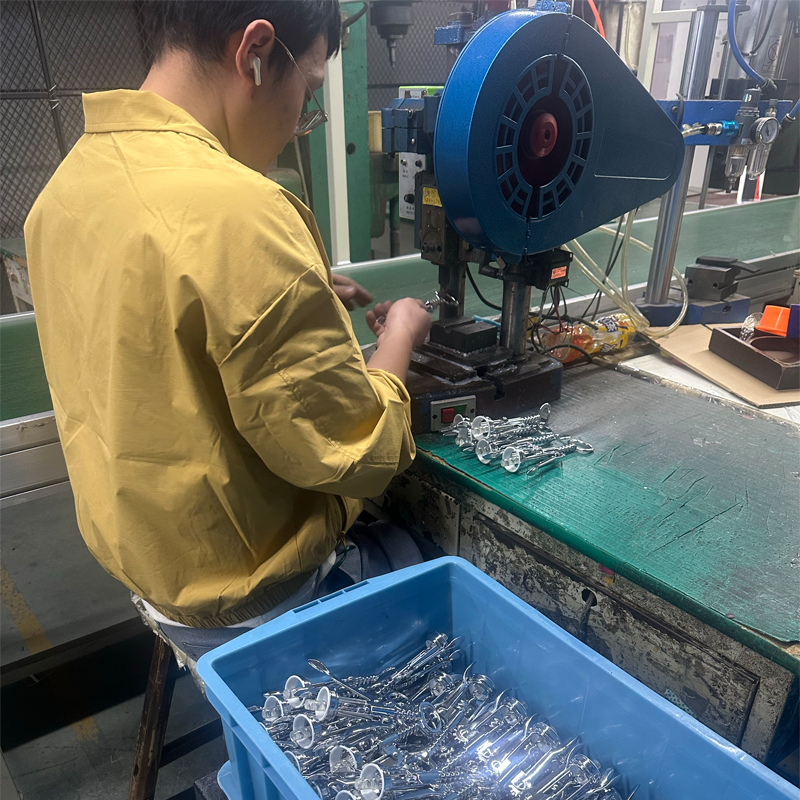 เกลียวเหล็กทั้งหมดได้มาถึงกระบวนการขั้นสุดท้ายซึ่งก็คือการประกอบ ขั้นแรก เราจะจำแนกชิ้นส่วนกึ่งสำเร็จรูปที่ผ่านการประมวลผลทั้งหมดตามประเภทของส่วนประกอบ เจ้าหน้าที่ควบคุมคุณภาพ (QC) ดำเนินการตรวจสอบเบื้องต้นเพื่อยืนยันว่าชิ้นส่วนกึ่งสำเร็จรูปเหล่านี้ตรงตามข้อกำหนดของผลิตภัณฑ์ทั้งหมดในด้านการทำงาน สี และคุณภาพพื้นผิว จากนั้นชิ้นส่วนที่มีคุณสมบัติครบถ้วนและมีข้อบกพร่องจะถูกแยกและจัดการแยกกัน รายงานการตรวจสอบจะถูกสร้างขึ้นและส่งไปยังทั้งแผนกการผลิตและแผนกคลังสินค้า ตามคู่มือข้อกำหนดผลิตภัณฑ์ที่กำหนดไว้ ชิ้นส่วนกึ่งสำเร็จรูปที่ผ่านการรับรองจะถูกจัดเก็บ ในสินค้าคงคลังและเข้าสู่สายการผลิตเพื่อประกอบต่อไป