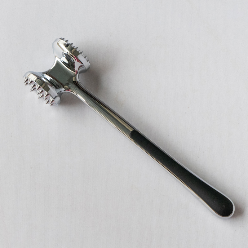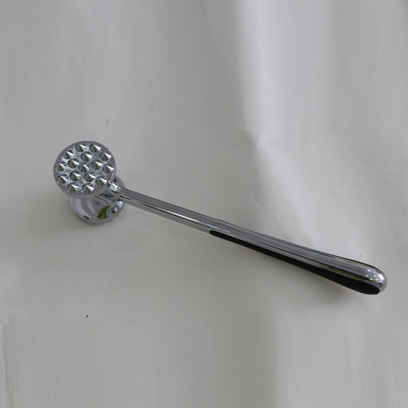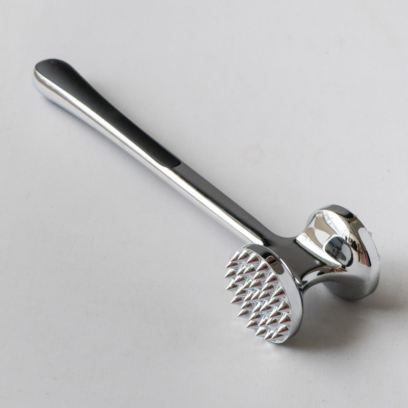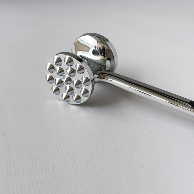นี่คือเครื่องทำให้เนื้อนุ่มโลหะผสมสังกะสีที่ผลิตโดย Jinhua Hanjia Commodity Co., Ltd ซึ่งผลิตโดยใช้กระบวนการหล่อแบบผสมผสาน พื้นผิวโลหะได้รับการขัดอย่างระมัดระวังด้วยมือและผลิตภัณฑ์ทั้งหมดผ่านกระบวนการชุบด้วยไฟฟ้าที่ปลอดภัยและเป็นมิตรกับสิ่งแวดล้อม จากนั้นจึงผ่านการเคลือบเพื่อให้มีความแข็งเท่ากับเหล็ก ด้วยความยาว 22 ซม. มีขนาดที่พอเหมาะพอดีเพื่อให้จับได้สะดวกในมือของผู้ใหญ่ การกระจายน้ำหนักระหว่างด้านหน้าและด้านหลังของเครื่องทำให้เนื้อนุ่มได้รับการออกแบบตามสีทอง อัตราส่วนทำให้ผู้ใช้สามารถตีเนื้อได้โดยใช้แรงเพียงเล็กน้อยโดยอาศัยแรงโน้มถ่วงของหัวค้อน หัวทำให้นุ่มเนื้อมีพื้นผิวที่แตกต่างกัน 2 แบบสำหรับเนื้อสัตว์ประเภทต่างๆ ตัวกันกระแทกพลาสติกทั้งสองด้านของด้ามจับให้ความสบายเมื่อใช้งานเป็นเวลานาน น้ำหนักโดยรวมของตัวทำให้นุ่มคือ 275 กรัม และการออกแบบทำให้มั่นใจได้ถึงการใช้งานที่ยอดเยี่ยมในขณะที่ลดต้นทุนเมื่อเทียบกับรุ่นดั้งเดิมมากกว่า 13% นอกจากนี้ยังทำความสะอาดง่ายมาก คุณสามารถล้างด้วยน้ำหรือใช้เครื่องล้างจานก็ได้