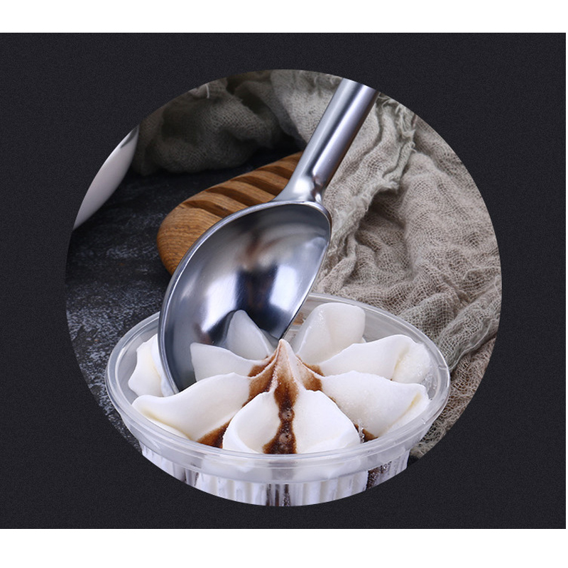 ที่ตักไอศกรีมโลหะผสมสังกะสีพร้อมที่จับที่จับสบายซึ่งสร้างขึ้นจากโลหะผสมสังกะสีระดับพรีเมียมผ่านการหล่อแบบไร้รอยต่อ ที่ตักไอศกรีมมีขอบโค้งมนโดยไม่มีมุมแหลมคม ทำให้มั่นใจได้ถึงประสบการณ์การจับที่โค้งมนและสบาย แม้จะมีความยาว 16.5 ซม. แต่ที่ตักมีน้ำหนักเพียง 75 กรัม เนื่องจากกระบวนการผลิตที่ทำด้วยมือทั้งหมด 6 ขั้นตอนของเรา พื้นผิวเคลือบด้วยการอบที่อุณหภูมิสูง (120°C) สร้างโครงสร้างที่ทนทานแต่มีน้ำหนักเบาเหมือนขนนก หัวตัก ใช้รูปทรงเรือเปิดพร้อมปลายแหลมที่ทำมุมออกด้านนอก 108 องศาที่ออกแบบมาโดยเฉพาะซึ่งสามารถหั่นไอศกรีมแช่แข็งได้อย่างง่ายดาย เส้นโค้งทั้งสองด้านของหัวตักทอดยาวต่ำกว่าตัวเครื่อง ทำให้เกิดพื้นผิวเป็นลอนคลื่นที่ช่วยให้ปล่อยไอศกรีมได้อย่างราบรื่น การออกแบบที่พิถีพิถันนี้ช่วยให้ทุกคนใช้งานได้ง่ายดาย โดยไม่คำนึงถึงระดับทักษะ